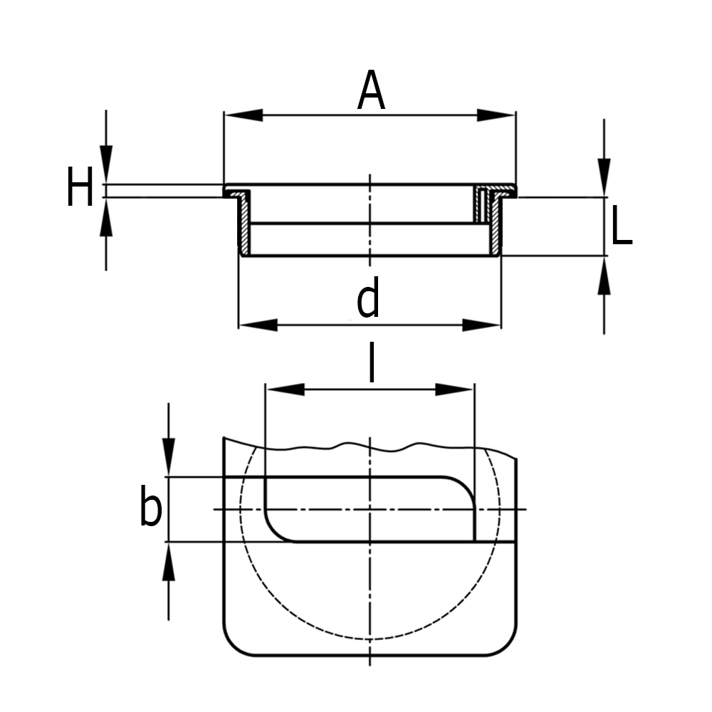 A=Lxb capuchon, a=Longeur trou de passage, B=Largeur trou de passage, H=Hauteur de tête, L=Longueur d'arbre