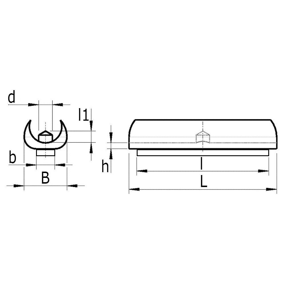 B=Largeur patin, B=Largeur feutre, Dimension du tube=Ø-tube extérieur, D=Ø-tige, h=Épaisseur surface de glissement, L=Longeur patin, l=Longueur feutre, l1=Longeur de tige