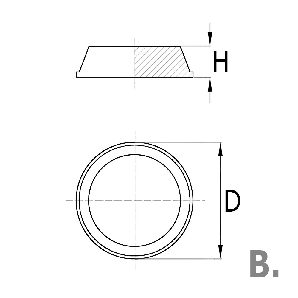 Quantité=Quantité pieds par feuille, D=Ø, H=Épaisseur