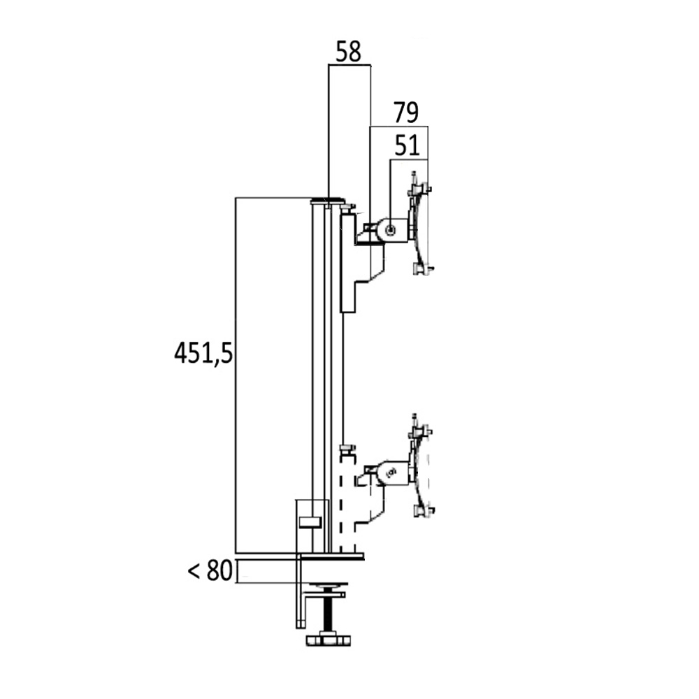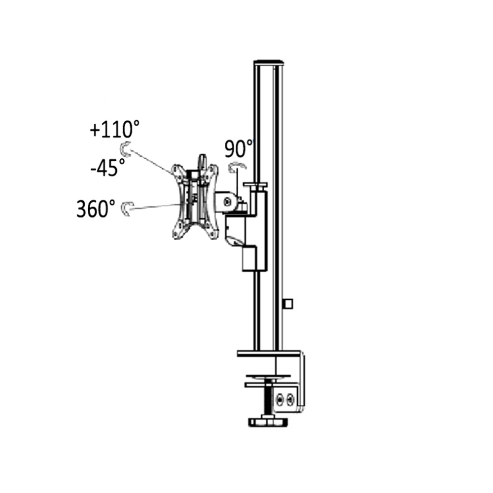 Bras support écran Galaxy Aluminium - SET - poteau 450mm avec support court - bord de la feuille - pince passe-câble - 1 écran - Blanc