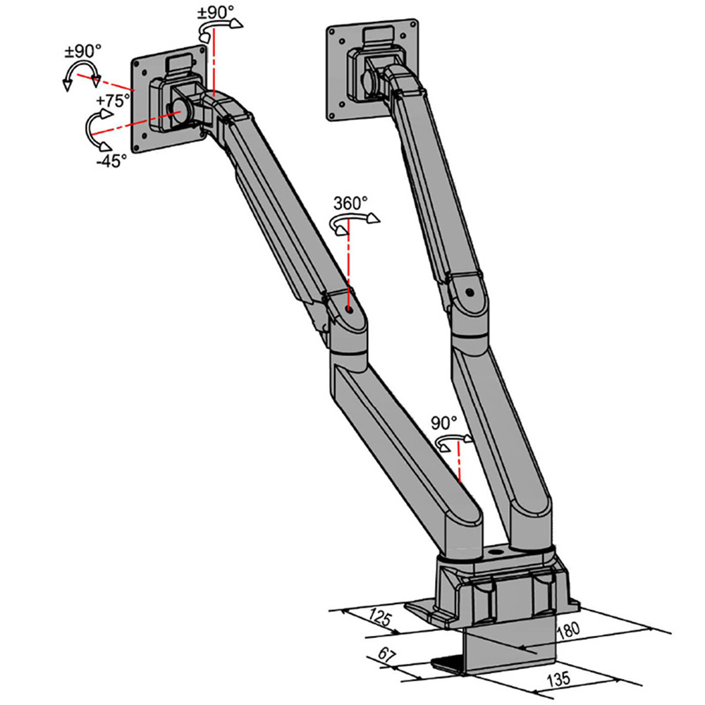 Bras support écran Dammian Aluminium - SET - 2 bras avec ressorts à gaz 2-10kg - 2 écrans - Argent
