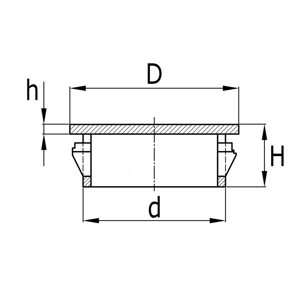 A=Ø-capuchon, B=Hauteur, Perçage =Ø-trou de montage , C=Hauteur capuchon, Épaisseur de plaque=Épaisseur de plaque maximale