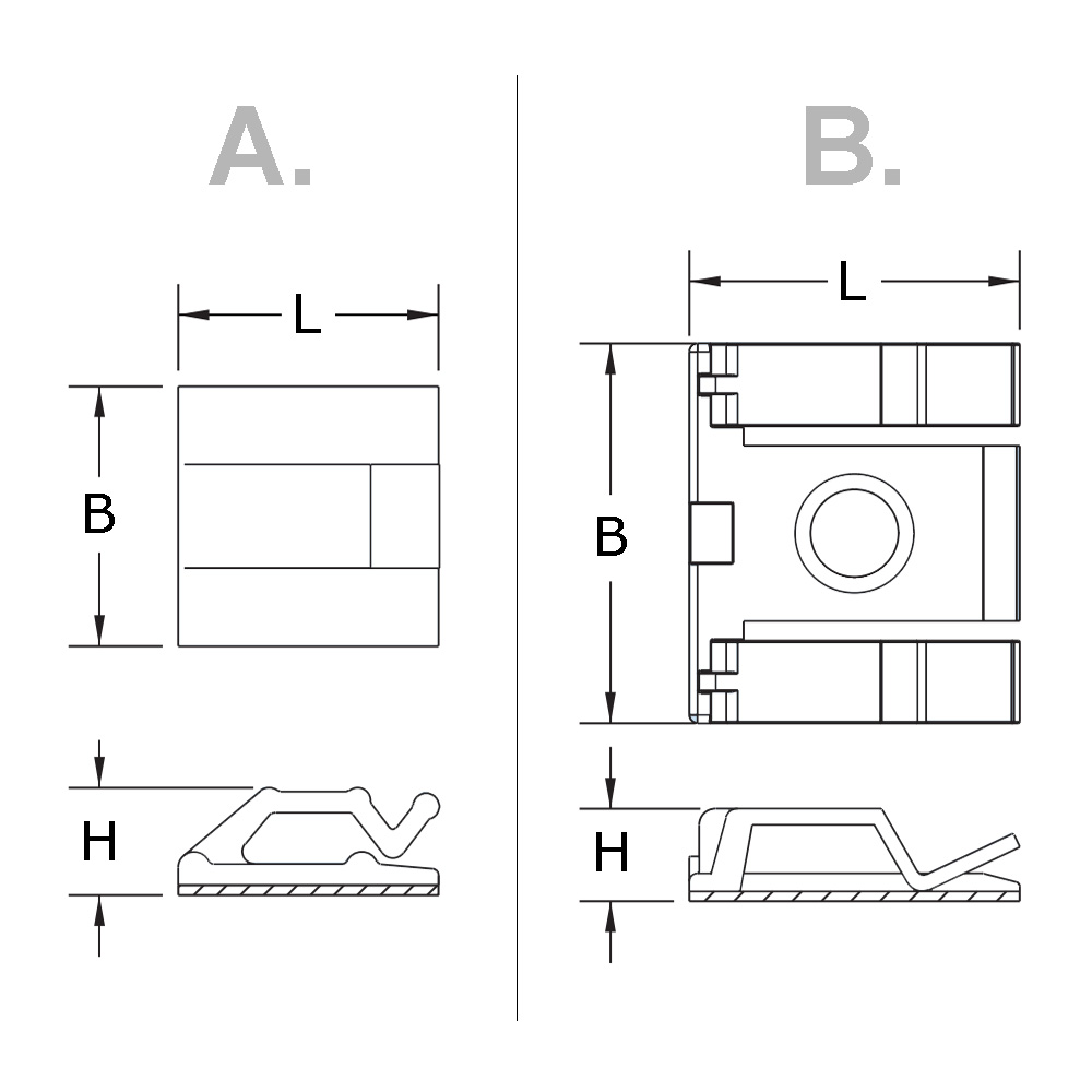 Clips pour câble auto-adhésifs PA - 28.6x25.4mm - H=7.9mm - Naturel