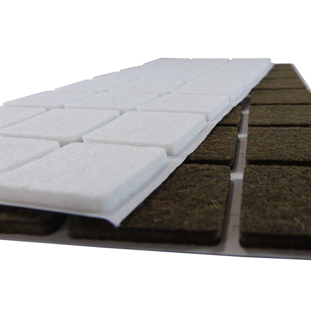 Patins de feutre carrés auto-adhésifs 20x20x3.5mm - 50 pièces par feuille - Brun