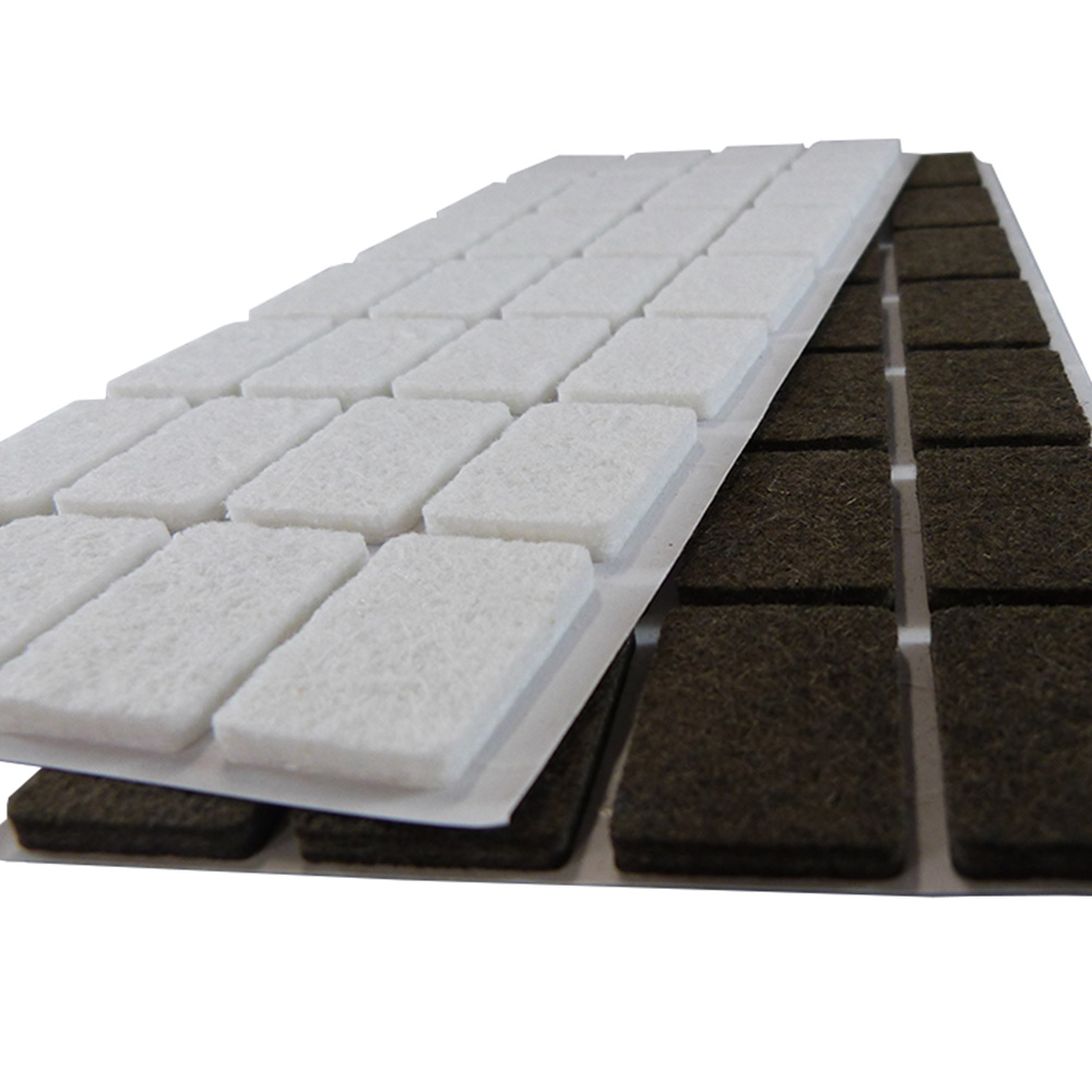 Patins de feutre rectangulaires auto-adhésifs 50x25mm- H=3.5mm - 18 pièces par feuille - Brun