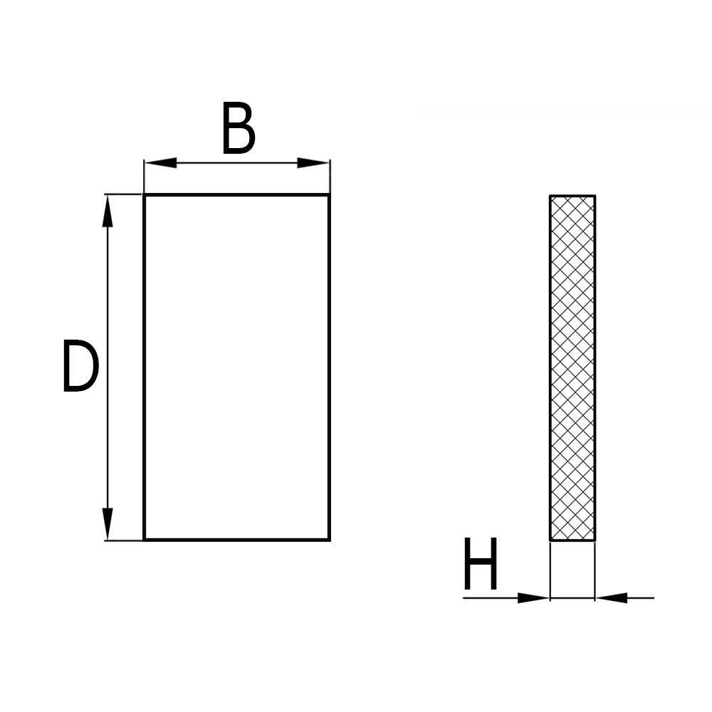 Quantité=Quantité rondelles de feutre par feuille, B=Largeur, H=Épaisseur de feutre, L=Longeur, Exécution=Largeur de feutre