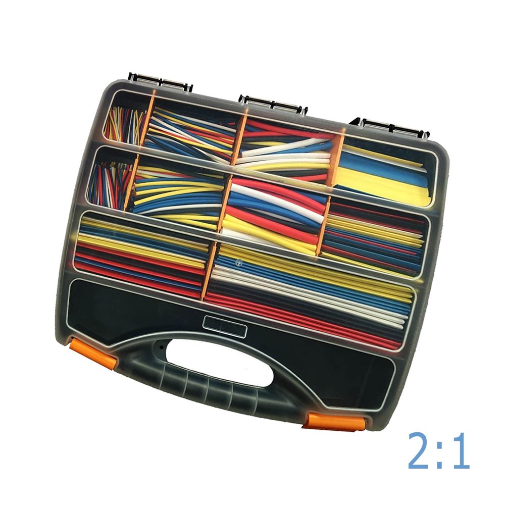 Boîte d'assortiment de gaine thermorétractable colorée 2:1 - 570 pièces
