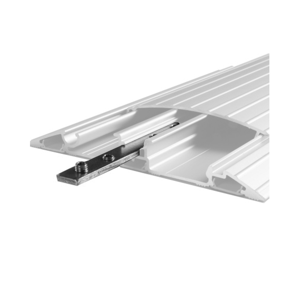 - Avec ces raccords, également appelés bandes d'accouplement, il est possible d'assembler plusieurs longueurs de goulottes de sol ou de pièces d'angle pour former un tout