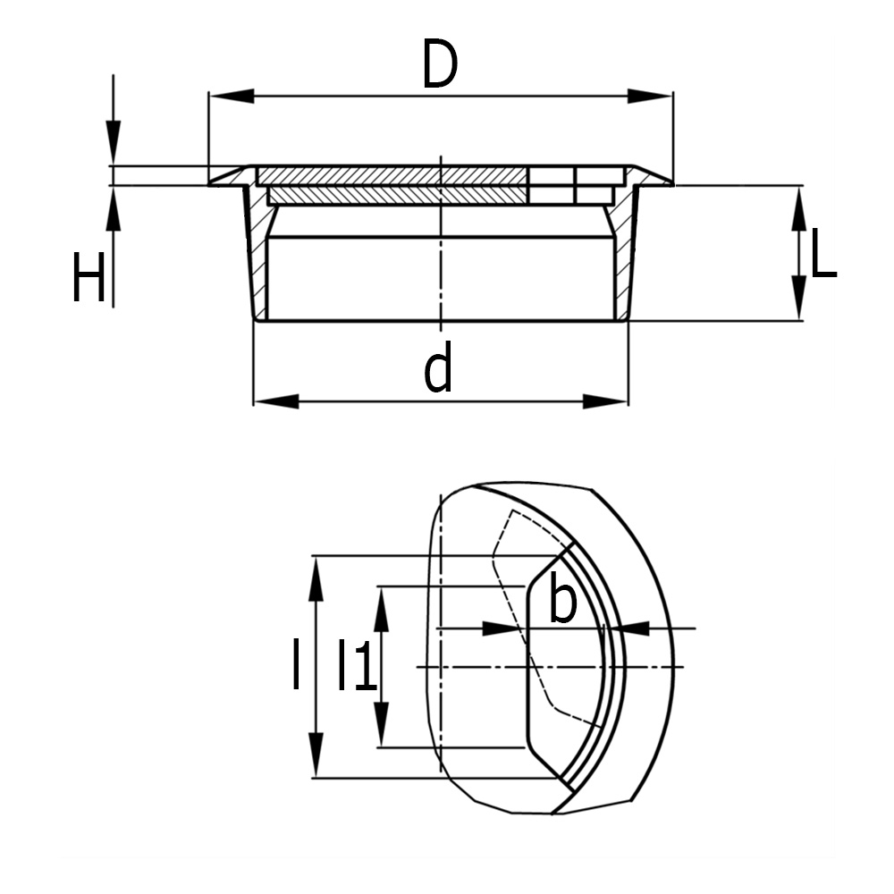 a=Largeur trou de passage, Perçage =Ø-trou de montage, B=Largeur trou de passage, c=Longeur trou de passage, D=Ø-tête, D=Ø-arbre, H=Hauteur de tête, L=Longueur d'arbre