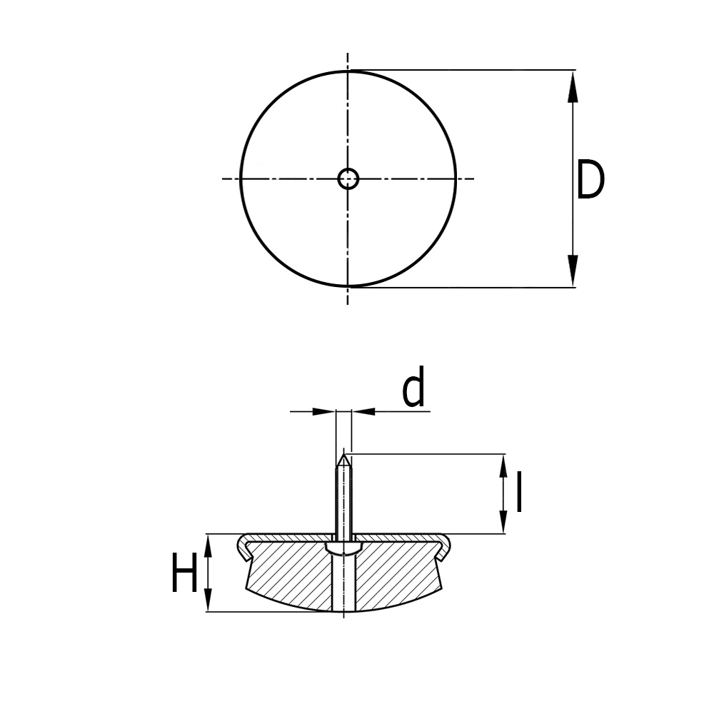 - Les patins de meuble ronds à clouer et à surface de glissement feutre sont disponibles dans des diamètres de surface de glissement allant de Ø18mm à Ø35mm