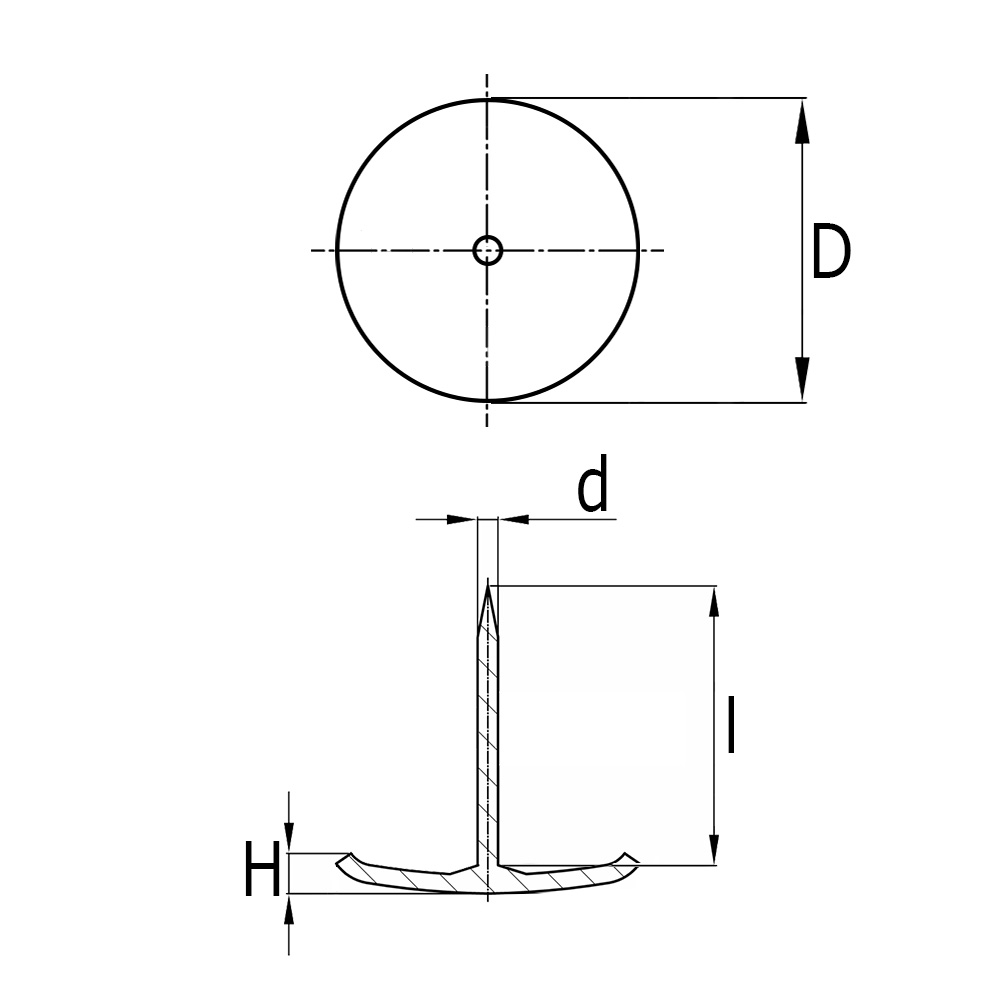 D=Ø-surface de glissement, D=Ø-vis, H=Hauteur, l=Longeur clou