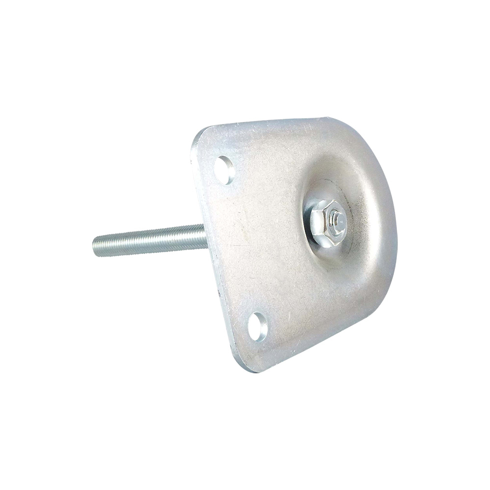 - Les pieds réglables à base demi-ronde en acier galvanisé avec trous de fixation sont disponibles avec des broches filetées de M16 à M24 avec des longueurs de filetage de 150mm ou 200mm