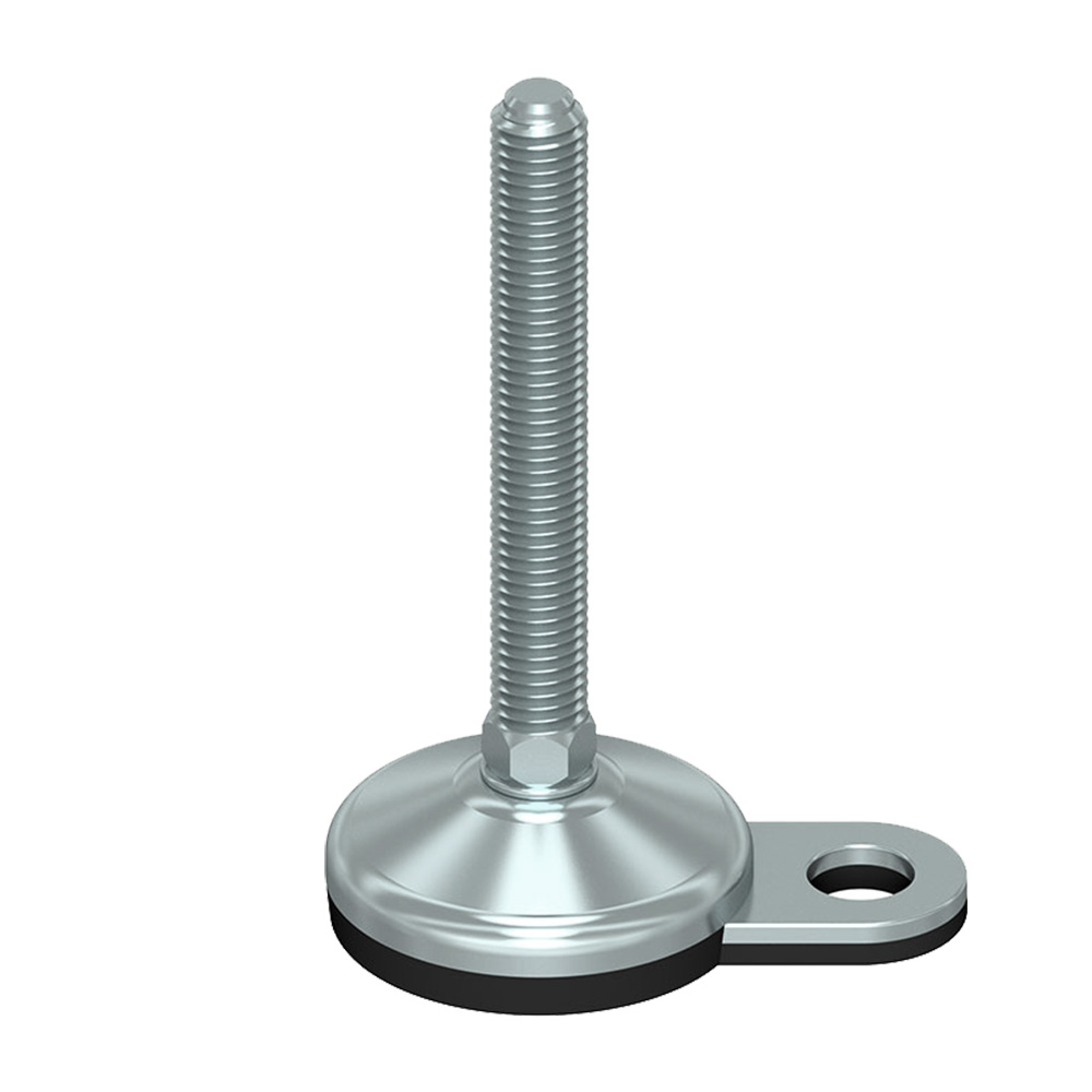 - Staal verzinkte stelvoeten met gevulcaniseerde NBR ant-slip voet en bevestigingsoog zijn leverbaar met draadspindels van M10 tot en met M30 in lengtes van 50mm tot en met 250mm