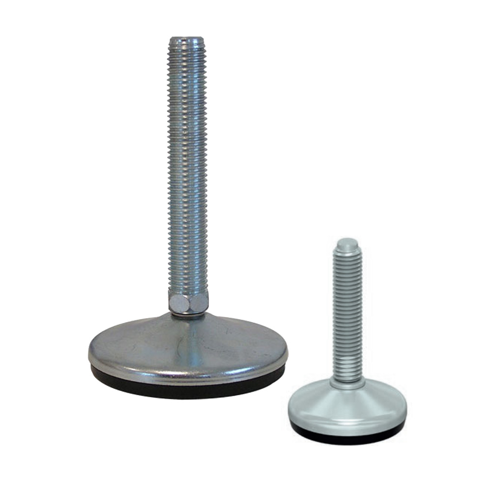 - Les pieds réglables en acier galvanisé avec pied antidérapant en NBR vulcanisé et patte de fixation sont disponibles avec des broches filetées de M10 à M30 dans des longueurs de 50 mm à 250 mm