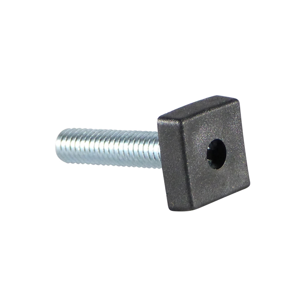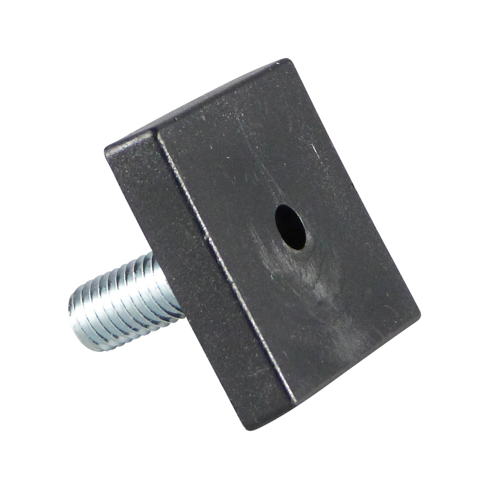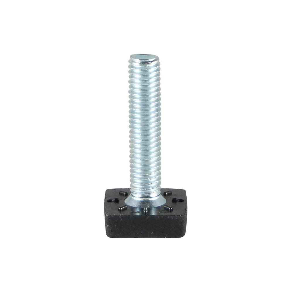 - Les pieds réglables à base carrée fixe en plastique sont disponibles avec des broches filetées de M8 ou M10 avec des longueurs de filetage effectives de 15mm à 46mm