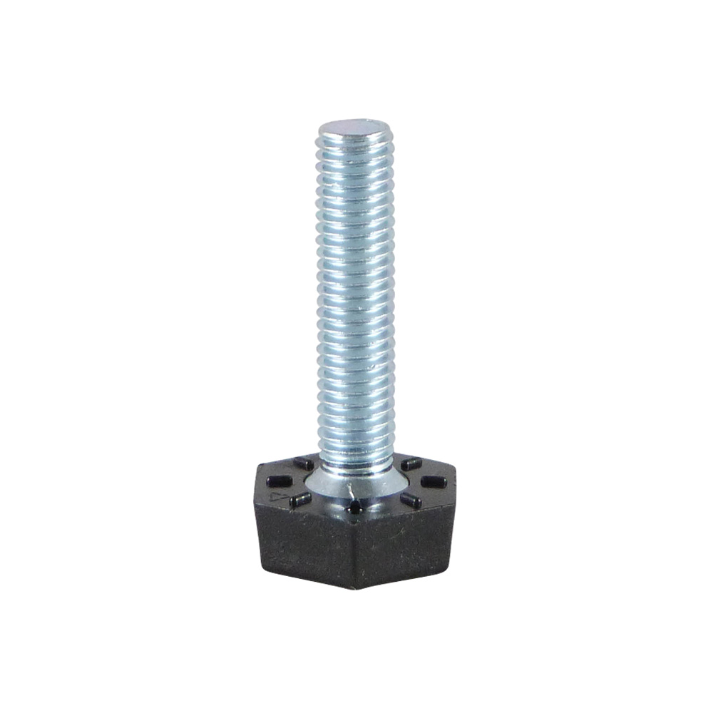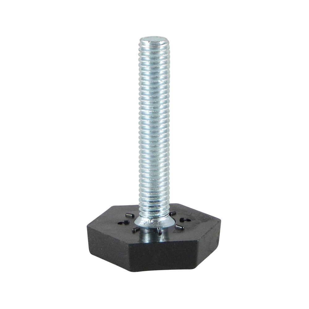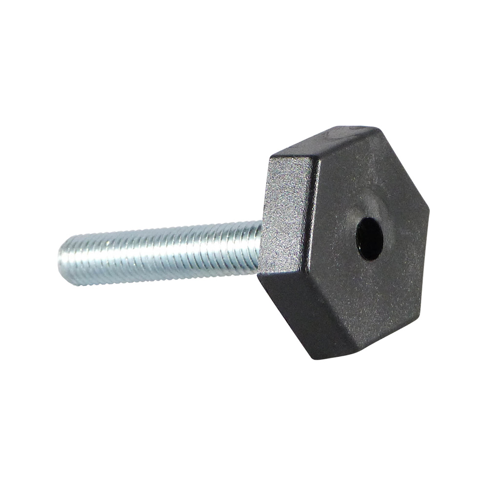 - Les pieds réglables avec pied hexagonal fixe en plastique sont disponibles avec des broches filetées de M8 ou M10 avec des longueurs de filetage de 20mm à 50mm