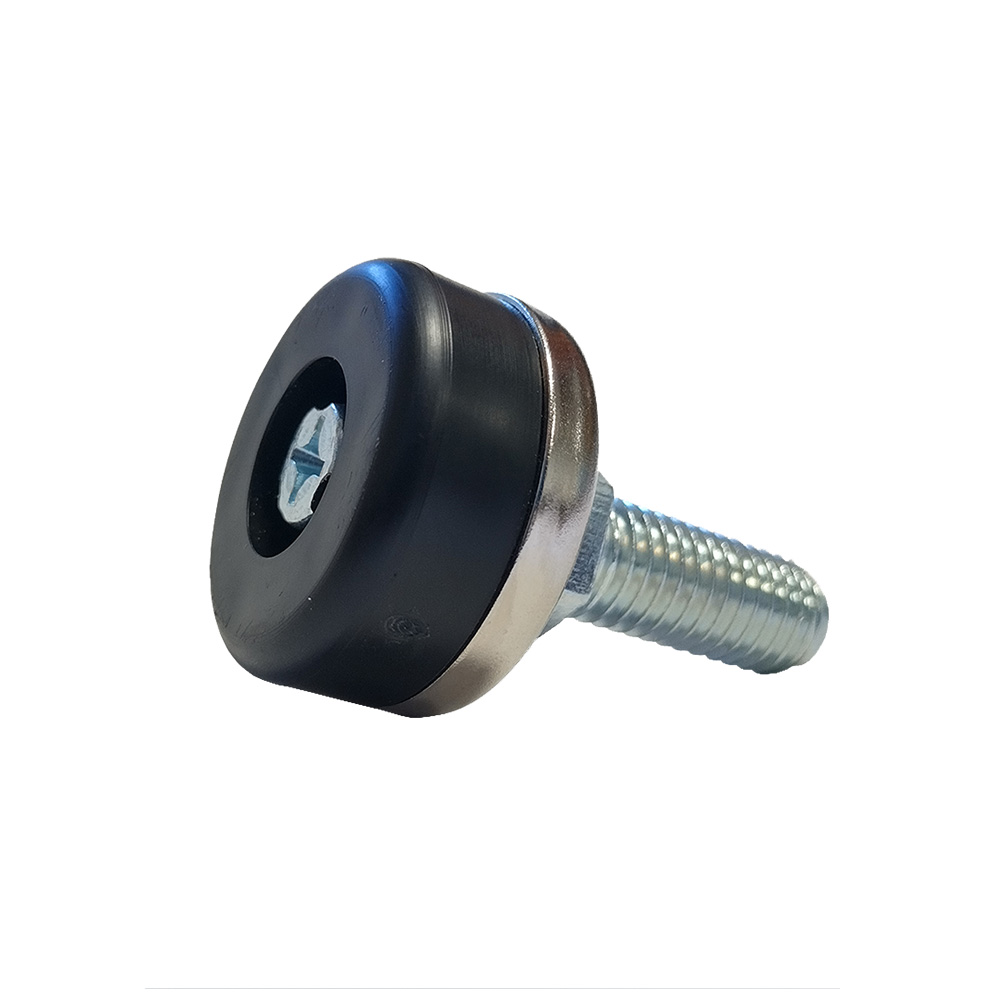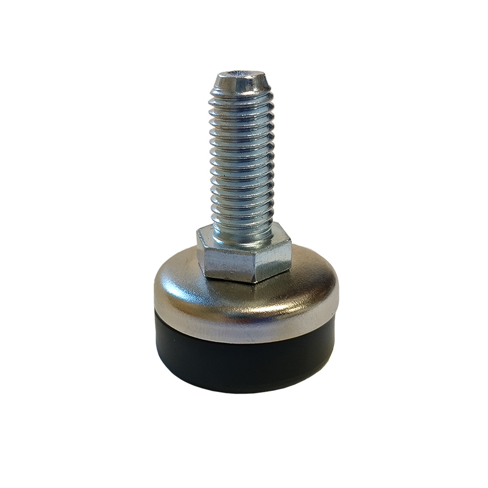 - Les pieds réglables avec couvercle cylindrique en acier nickelé et pied fixe en plastique polypropylène sont disponibles avec des broches filetées M10 en acier galvanisé avec des longueurs de filetage de 25 mm à 70 mm