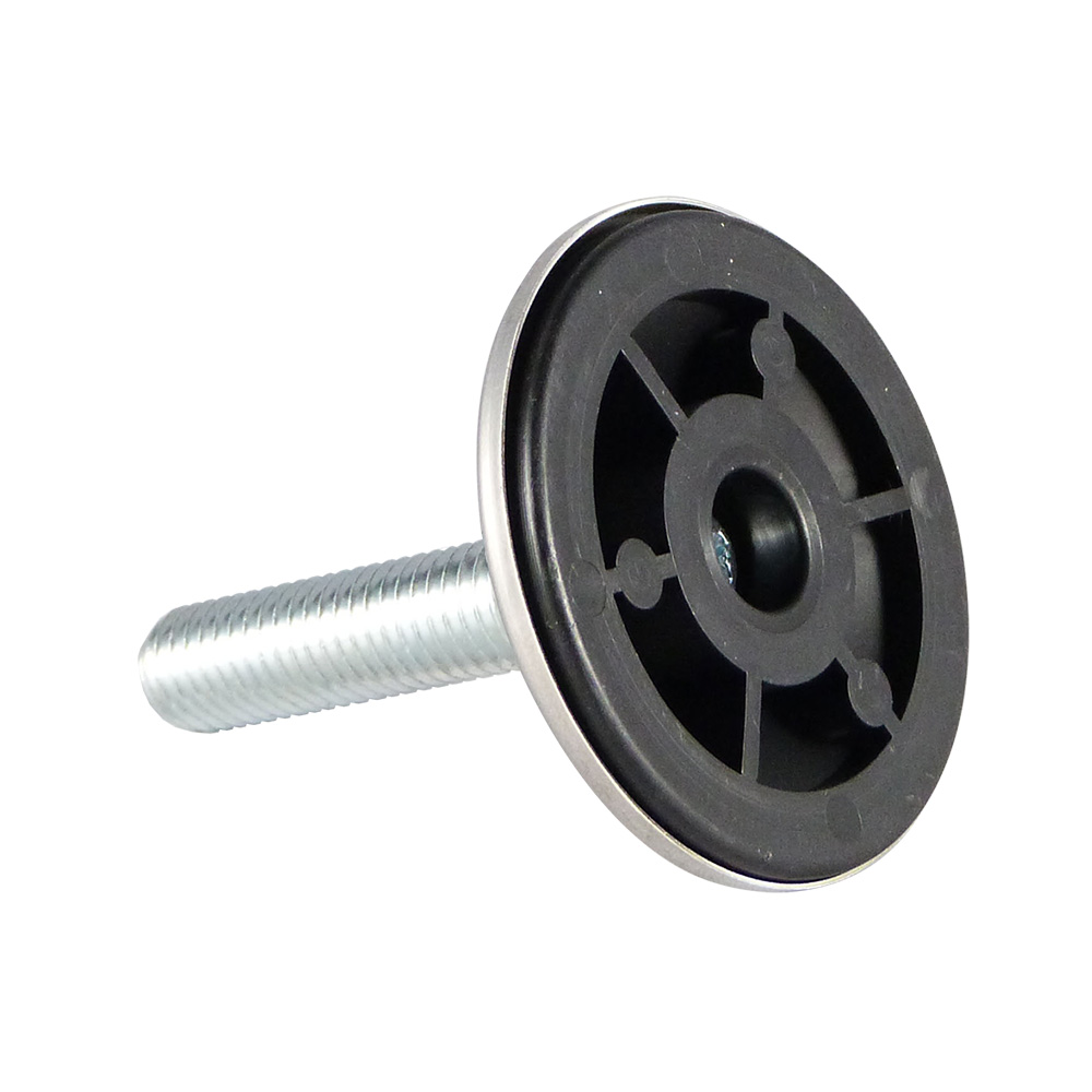 - Les pieds réglables avec couvercle conique en acier inoxydable et pied pivotant en plastique sont disponibles avec des broches filetées de M8 à M10 avec des longueurs de filets de 16mm à 70mm