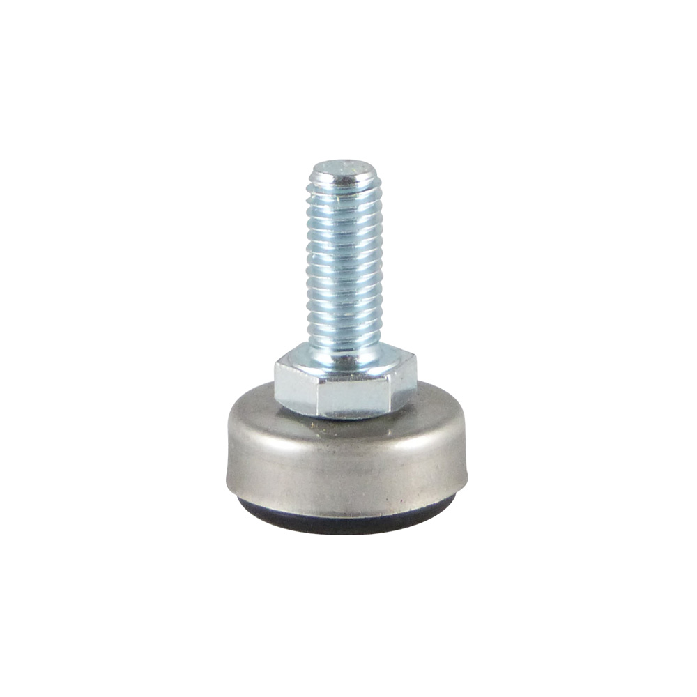 • Les pieds réglables avec couvercle cylindrique en acier inoxydable et base en plastique sont disponibles avec des broches filetées en acier galvanisé de M8 à M12 avec des longueurs de filets de 16 mm à 70 mm