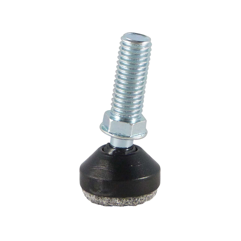 - Stelvoeten met conische kunststof voet met vilt en kogelgewricht zijn leverbaar met draadspindels van M8 en M10 met draadlengte van 25mm