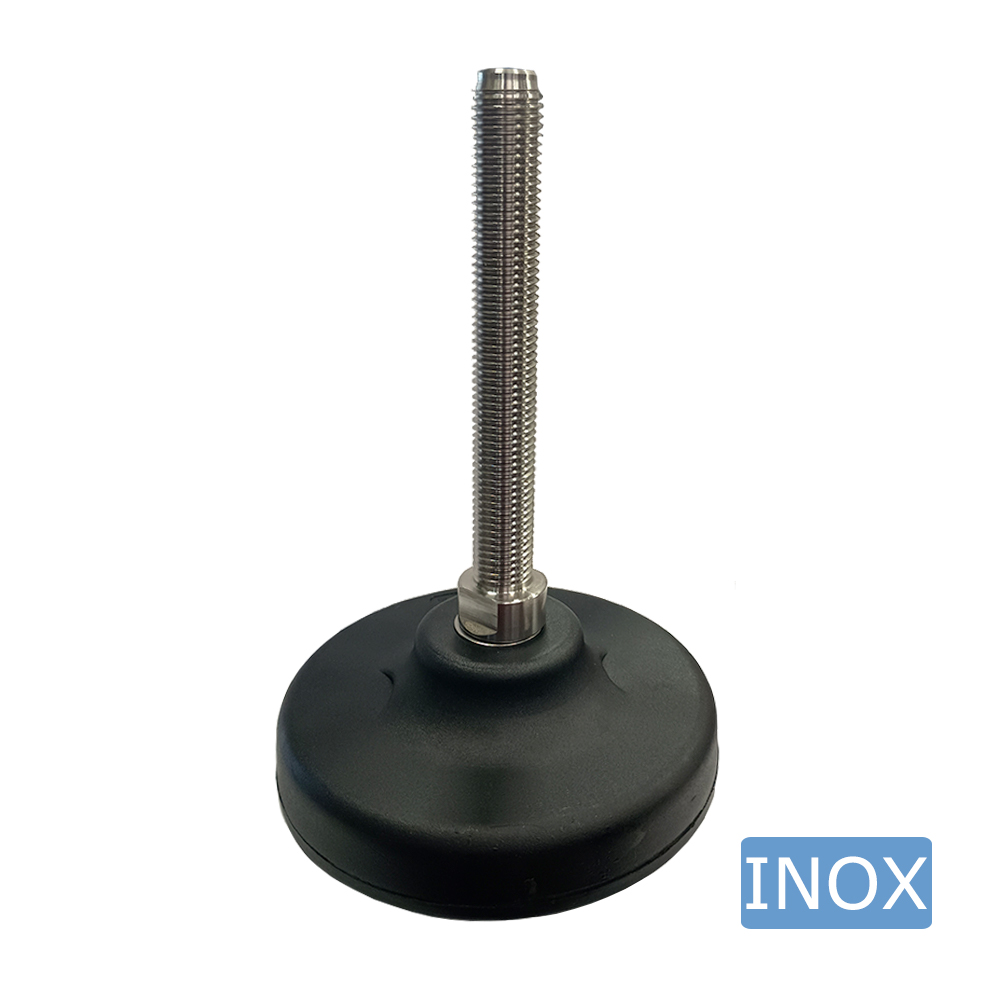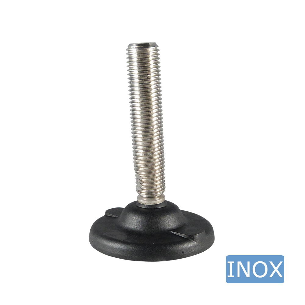 • Les pieds réglables à base plastique pivotante sans rotule sont disponibles avec des tiges filetées en INOX de M16 à M30 dans des longueurs de 81 mm à 207 mm