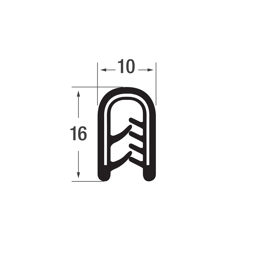 Joint U bord de tôle autoclippant 16x10mm - PVC armature en acier - accrochage 1-4mmdrawing_1