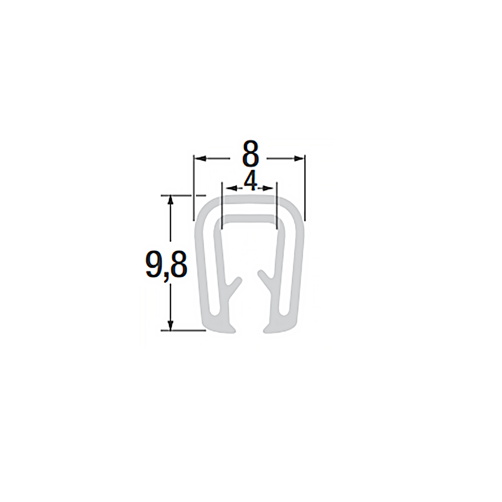 Joint protection bord de tôle 9.8x8mm - PVC insert de sangle en silicone - plage de serrage 2-3mmdrawing_1