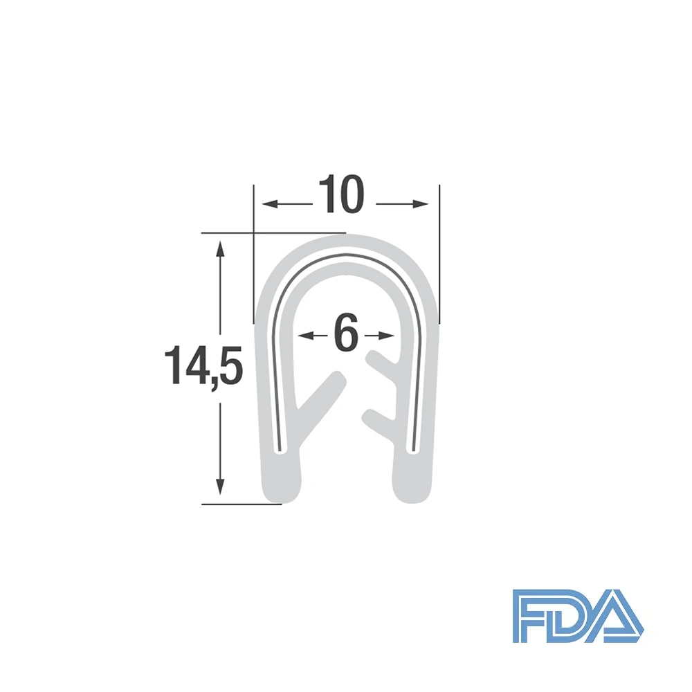 Joint protection bord de tôle autocollant 14.5x10mm - FDA silicone shore 60 avec insert de sangle - plage de serrage 2-4mm