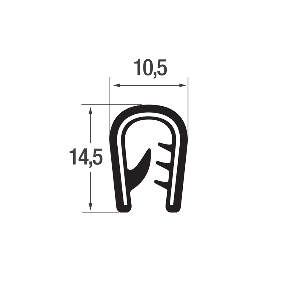 • Zelfklemmend PVC kantprofiel 14,5x10,5mm (HxB) is leverbaar voor klembereik 2-5mm plaatdikte
