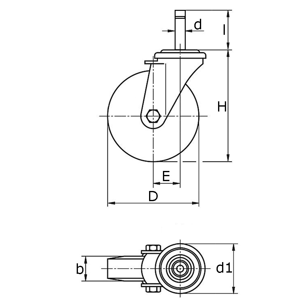 - Les roues pivotantes des appareils avec tige et bandage TPE sur jante plastique sont disponibles en dimension de roue Ø50mm