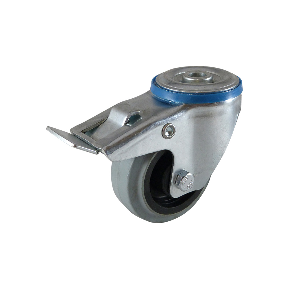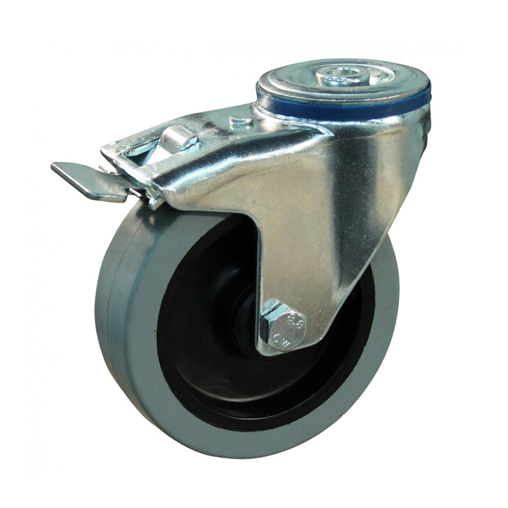 Roue pivotante à frein à trou central avec bandage élastique