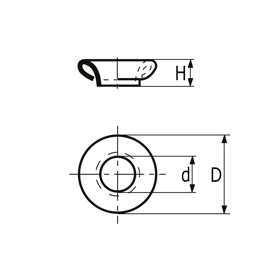 D=Ø-extérieur, D=Ø-perçage, H=Hauteur totale , M=Convient pour filetage métrique