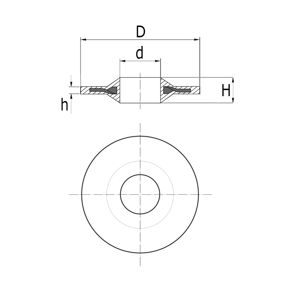 D=Ø-extérieur, D=Ø-perçage, H=Hauteur totale , h=Hauteur, M=Convient pour filetage métrique