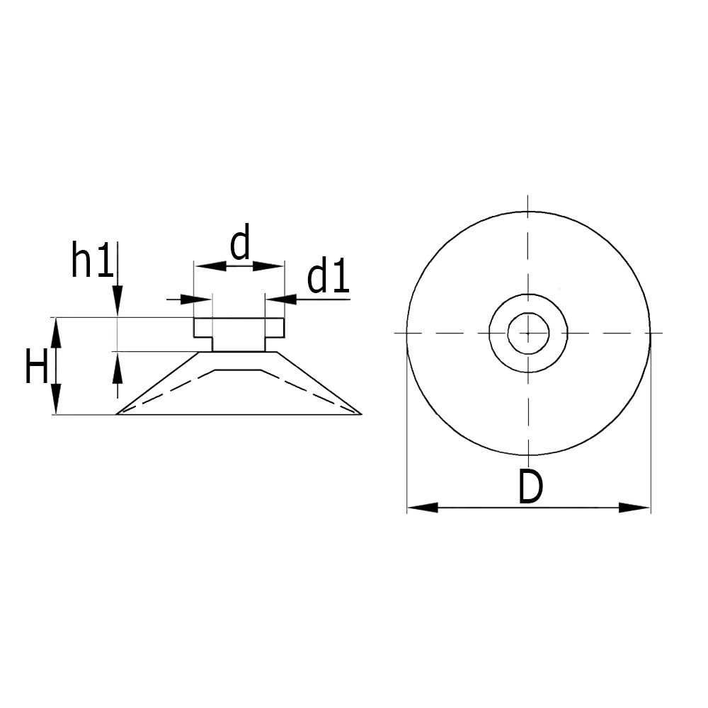 Ventouse avec tige avec filetage
